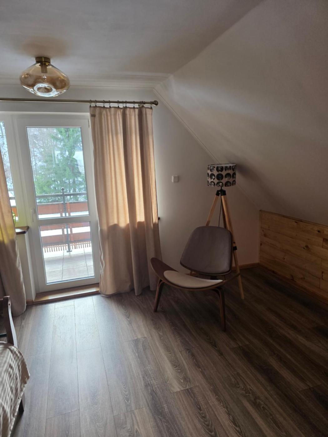 Domek z 2 sypialniami. This chalet features a fireplace. Guests will find a stovetop, a refrigerator, kitchenware and a microwave in the fully equipped kitchen. The chalet also provides guests with a barbecue. The spacious chalet provides a private entrance, soundproof walls, a terrace with garden views as well as a shared bathroom featuring a walk-in shower. The unit offers 5 beds. Domek - 6 osobowy. Powierzchnia pokoju ok.: 75 mkw.