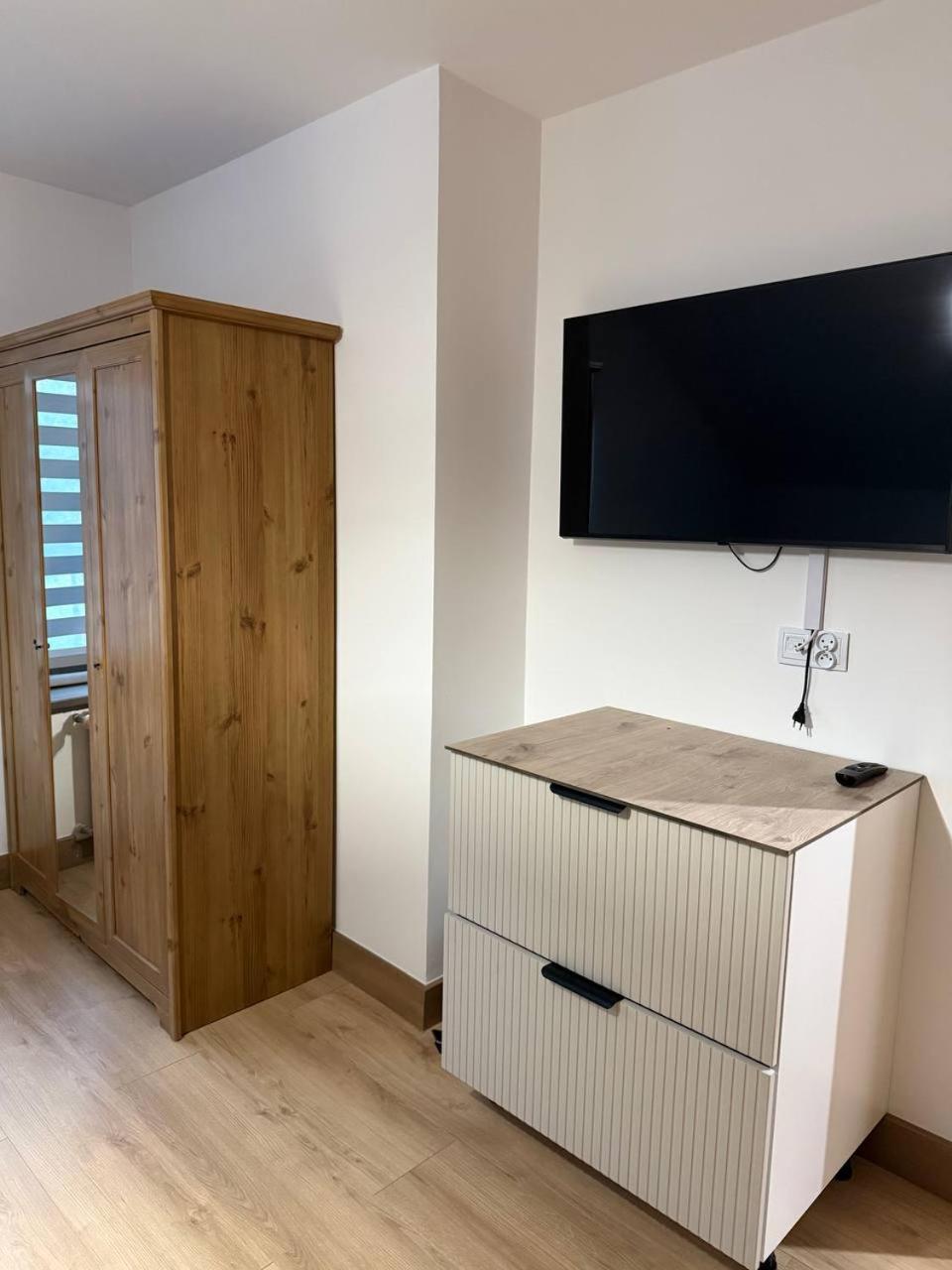 Pokój Dwuosobowy ze wspólną łazienką. Providing free toiletries, this double room includes a shared bathroom with a shower and a hairdryer. The well-fitted kitchen features a refrigerator, a dishwasher, a microwave and a tea and coffee maker. The double room provides a wardrobe, parquet floors, heating and a flat-screen TV. The unit offers 12 beds. Pokój Dwuosobowy - 2 osobowy. Powierzchnia pokoju ok.: 14 mkw. ;