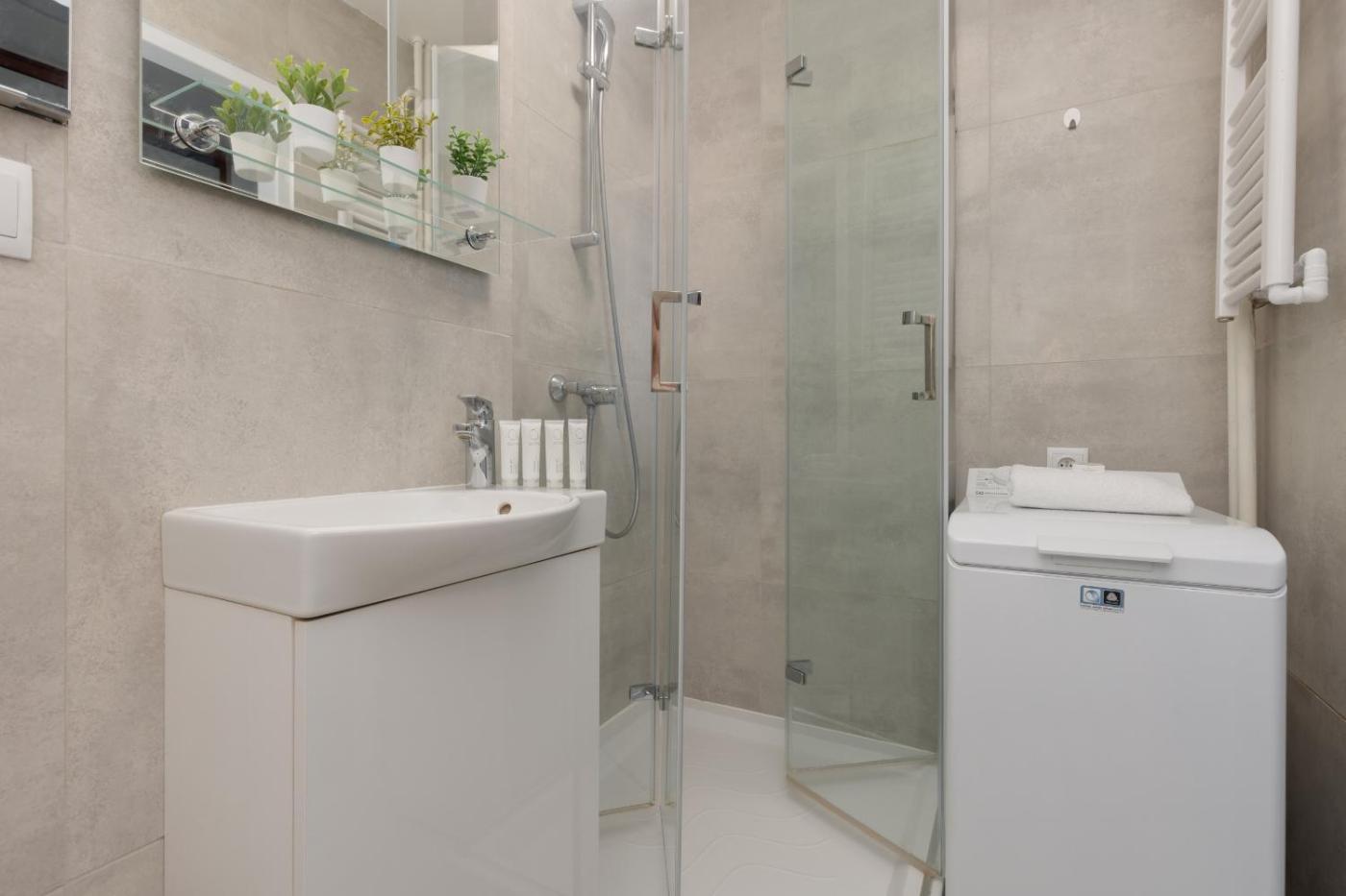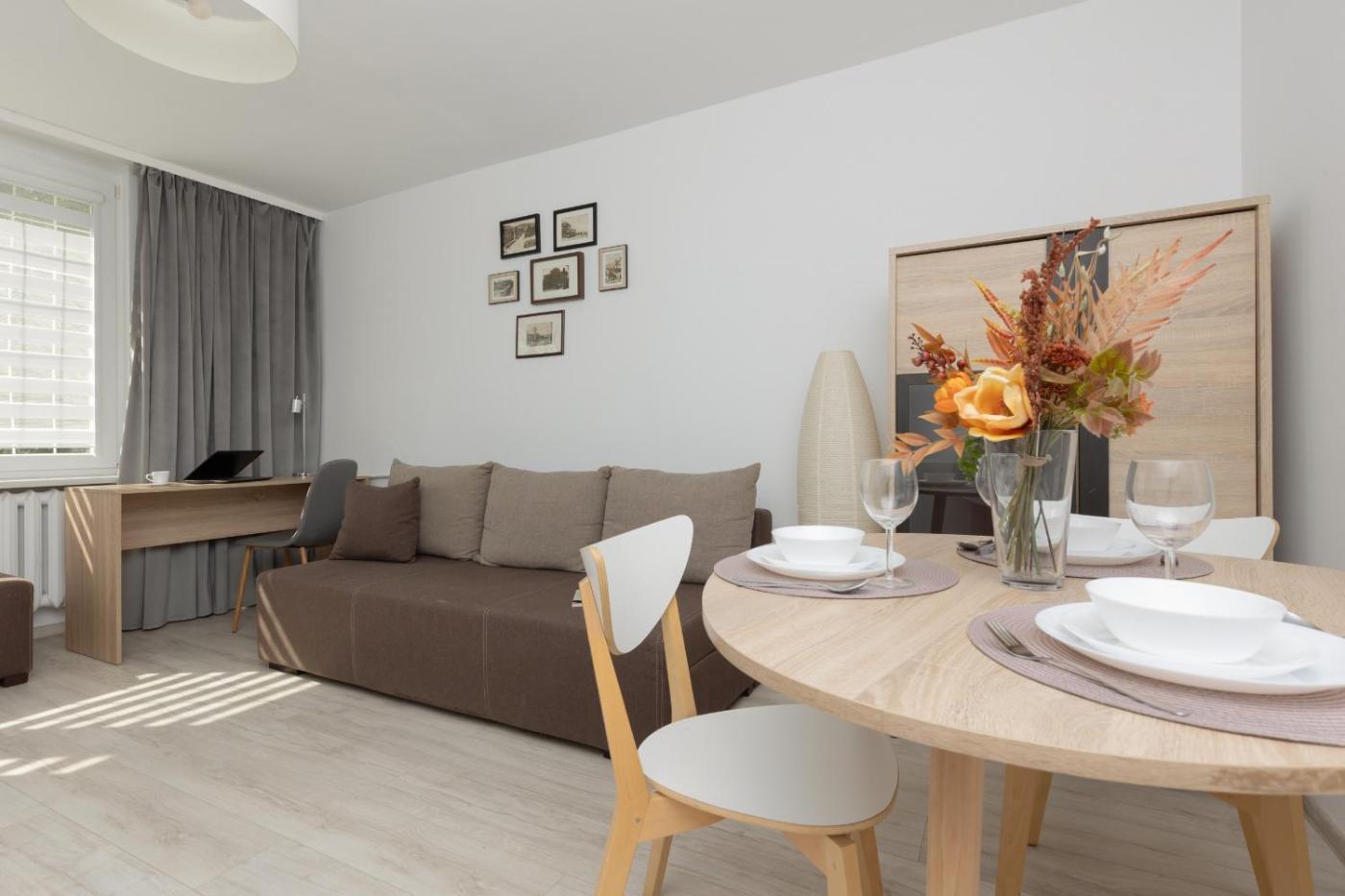 Apartament z 1 sypialnią. Boasting a private entrance, this apartment comes with 1 living room, 1 separate bedroom and 1 bathroom with a shower and a hairdryer. Guests can make meals in the kitchen that features a stovetop, a refrigerator, a dishwasher and kitchenware. Featuring a balcony, this apartment also features a washing machine, a tea and coffee maker and a flat-screen TV with streaming services. The unit has 2 beds. Apartament - 5 osobowy. Powierzchnia pokoju ok.: 36 mkw.
