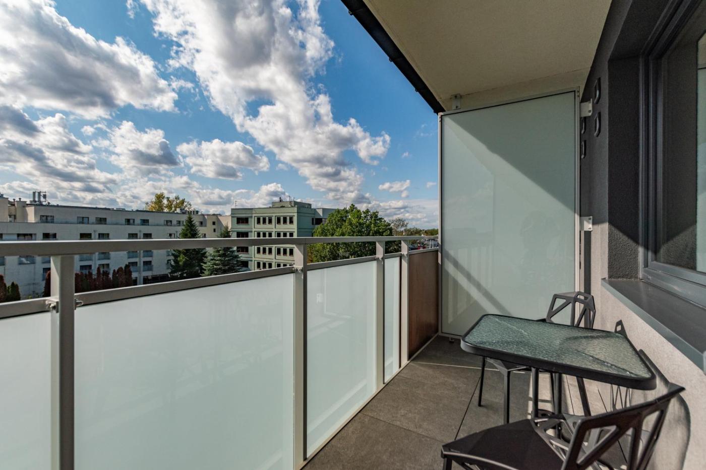 Studio. In the well-fitted kitchen, guests will find a stovetop, a refrigerator, kitchenware and an electric kettle. The studio features air conditioning, a dining area, a balcony with city views as well as a private bathroom boasting a shower. The unit has 1 bed. Studio - 2 osobowy. Powierzchnia pokoju ok.: 21 mkw.