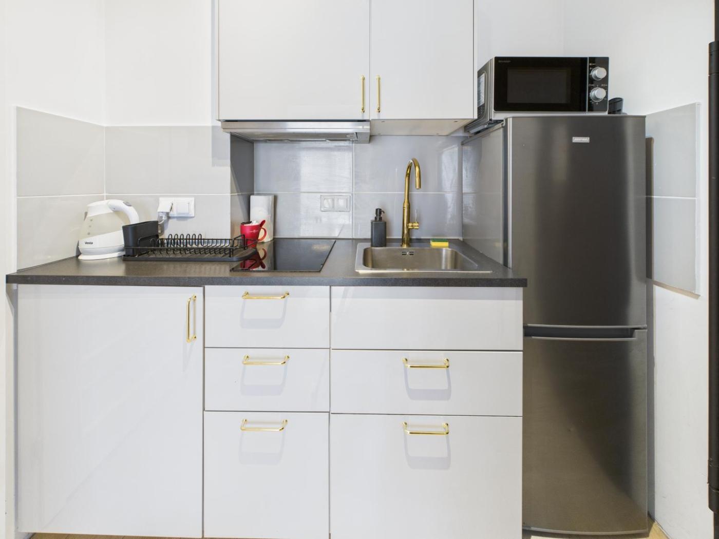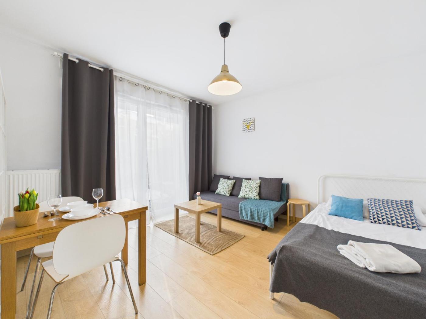 Apartament typu studio. Featuring 1 bedroom, this apartment offers 1 bathroom with a walk-in shower, a seating area and terraceyou can relax. Guests can make meals in the kitchen that comes with a stovetop, a refrigerator, kitchenware and a microwave. Boasting an outdoor dining area, this apartment also provides a washing machine, a tea and coffee maker and a TV with cable channels. The unit has 2 beds. Apartament - 4 osobowy. Powierzchnia pokoju ok.: 27 mkw.