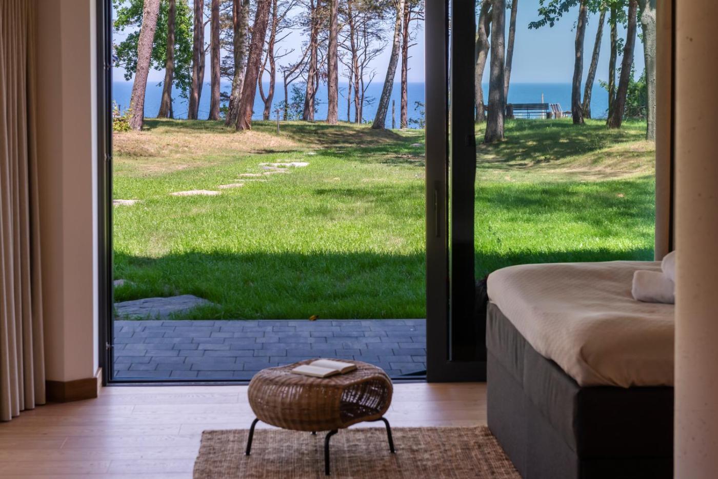 Apartament z widokiem na morze. Jest to apartament z sauną oraz kominkiem. W tym apartamencie mieści się sypialnia oraz łazienka z prysznicem i bezpłatnymi przyborami toaletowymi. W kuchni zapewniono płytę kuchenną, lodówkę, zmywarkę do naczyń i przybory kuchenne. Ten apartament z drewnianą podłogą i widokiem na morze oferuje również część wypoczynkową z telewizorem z płaskim ekranem, jadalnię i czajnik elektryczny. Na gości czekają 2 łóżka. Apartament - 4 osobowy. Powierzchnia pokoju ok.: 60 mkw. ;